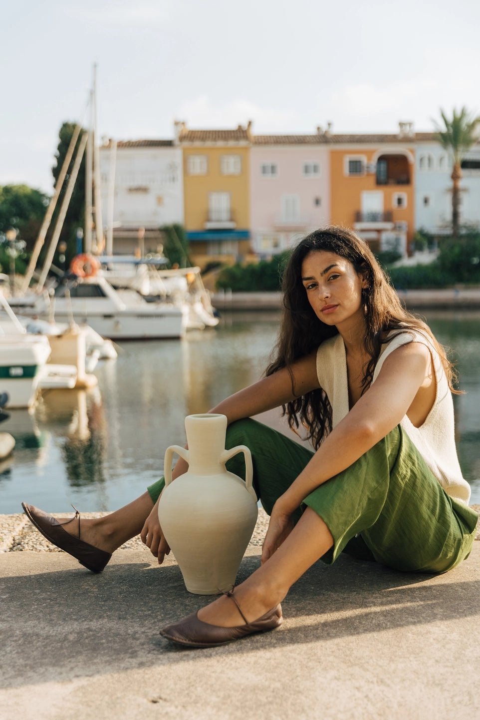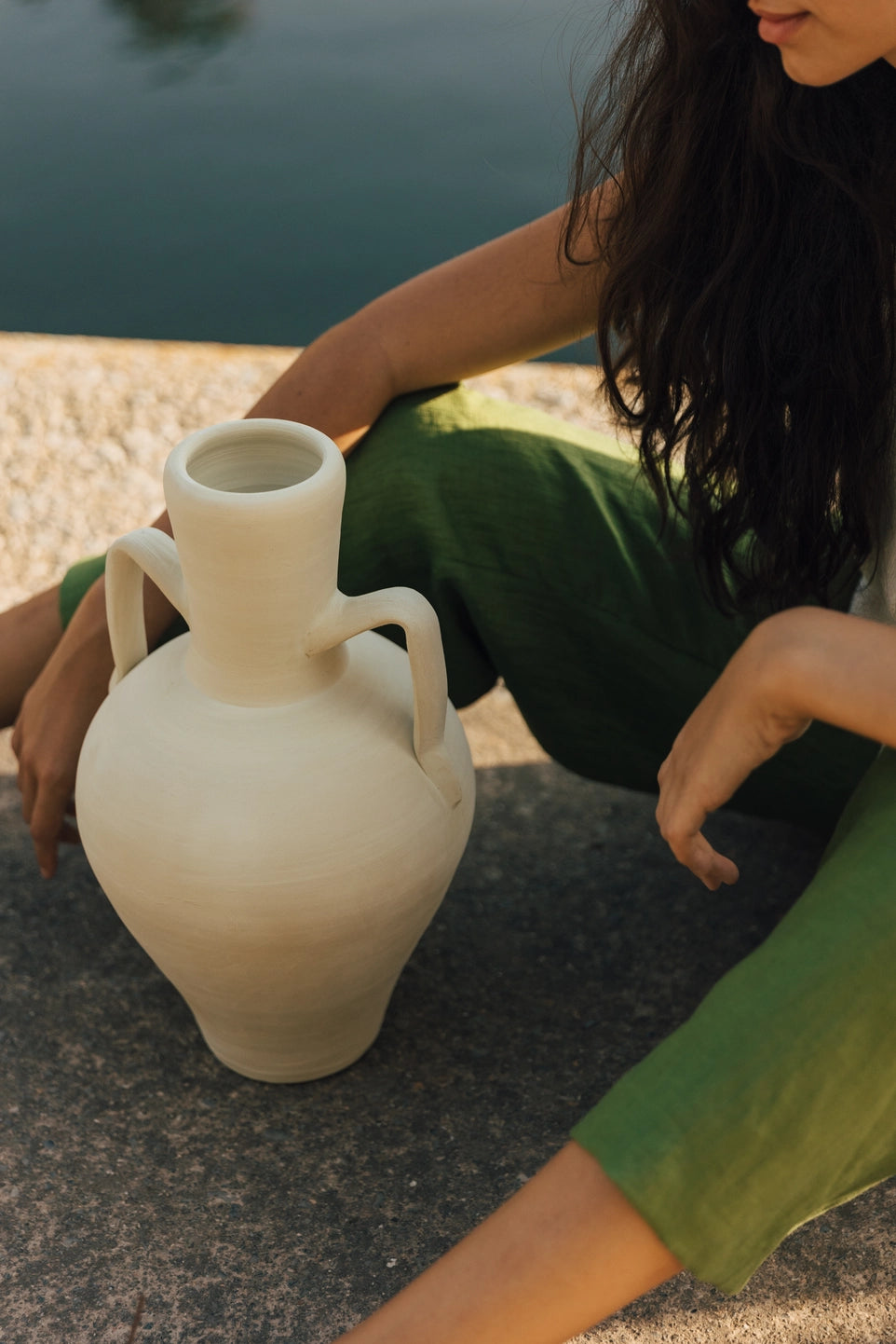 Cette pièce décorative a un aspect blanc brut et une texture rugueuse. Il est fabriqué avec des pores ouverts, nous ne recommandons donc pas de l'utiliser avec de l'eau, car il peut suinter du liquide au fil des heures. Chaque pièce est fabriquée à la main et est unique, vous y trouverez donc des imperfections et des marques. Les traces de savoir-faire sont perceptibles sur chaque pièce. Les mesures et la couleur réfléchie sont indicatives et peuvent varier en fonction du processus de fabrication.