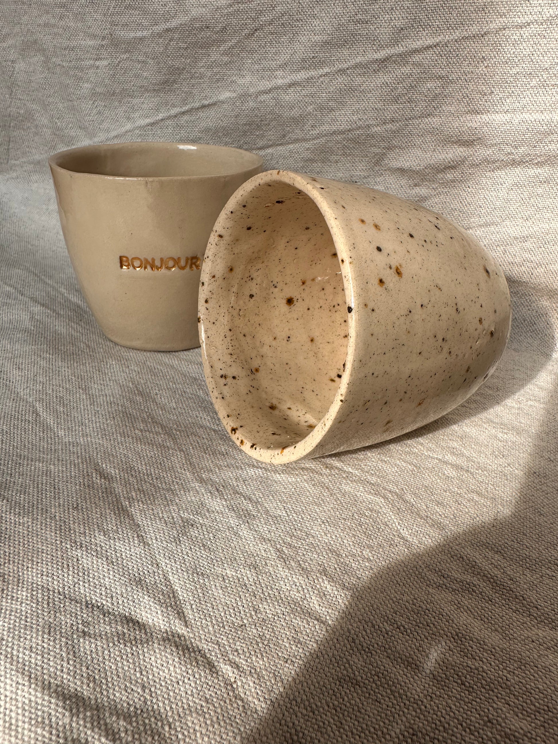 Très belle tasse à café en grès moucheté effet naturel et minimaliste. Nos tasses sont réalisées à l'estampage avec des effets irréguliers. Fabriqué en France à la main.